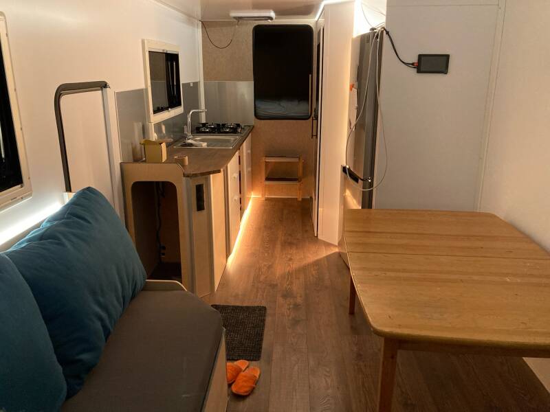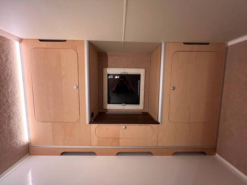Hier bestand nun die Schwierigkeit darin, wieder die Alde-Konvektoren bzw. das Heizungsprinzip mitzudenken. Gleichzeitig durfte natürlich nicht der Platzbedarf für einen möglichen Durchstieg zwischen Kabine und Fahrerhaus fehlen. Einige Überlegungen später wurde mit dem Bau begonnen.