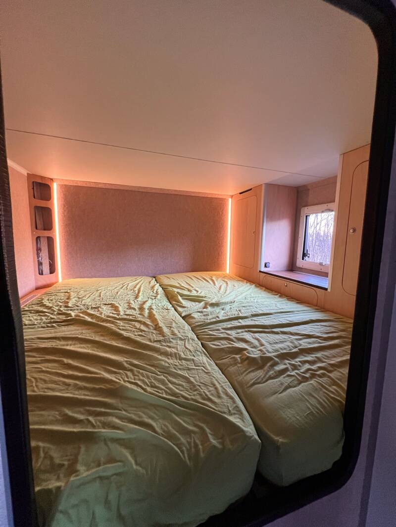 Nach einem kurzen Besuch bei nomadcampers (dem Bausatzhersteller unserer Kabine) im schönen Schwarzwald haben wir den Tipp bekommen, die Staubdichtung der Mekuwa-Staufachklappenrahmen mit Entwässerungslöchern zu versehen. Andernfalls kann durch die Kapillarwirkung Regenwasser in den Innenraum gelangen kann. Dies ist bei uns tatsächlich auch passiert. Für die Entwässerungslöcher wurde einfach eine handelsübliche Lochzange verwendet. Wir werden nun testen, ob dieser Tipp hilfreich ist :)