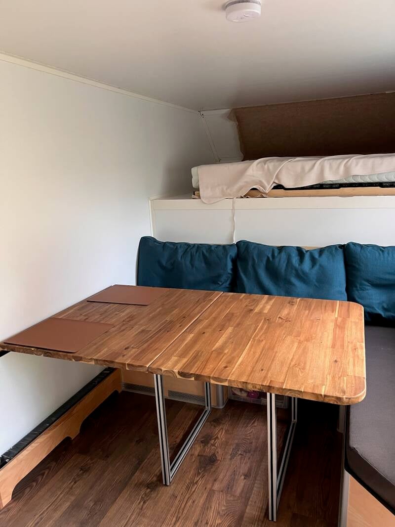 Für unsere erste Tour haben wir einen alten Tisch eingepackt, um erst einmal ein Gefühl für die Größe eines Tisches zu bekommen. Während der ersten Tour haben wir uns dann Gedanken über die Konstruktion unseres Tisches gemacht. Dieser sollte natürlich eine Eierlegende Wollmilchsau sein. Unsere Anforderungen waren: